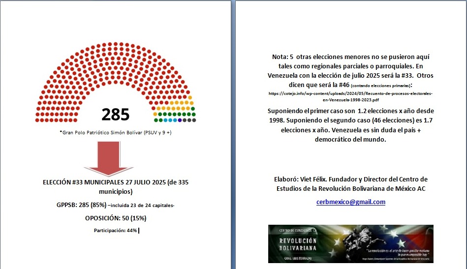 El 27 de julio de 2025 se llevaron acabo elecciones municipales. El PSUV se llevó 285 de 335 es decir el 85%; además se eligieron por primera vez miles de propuestas juveniles de proyectos locales.